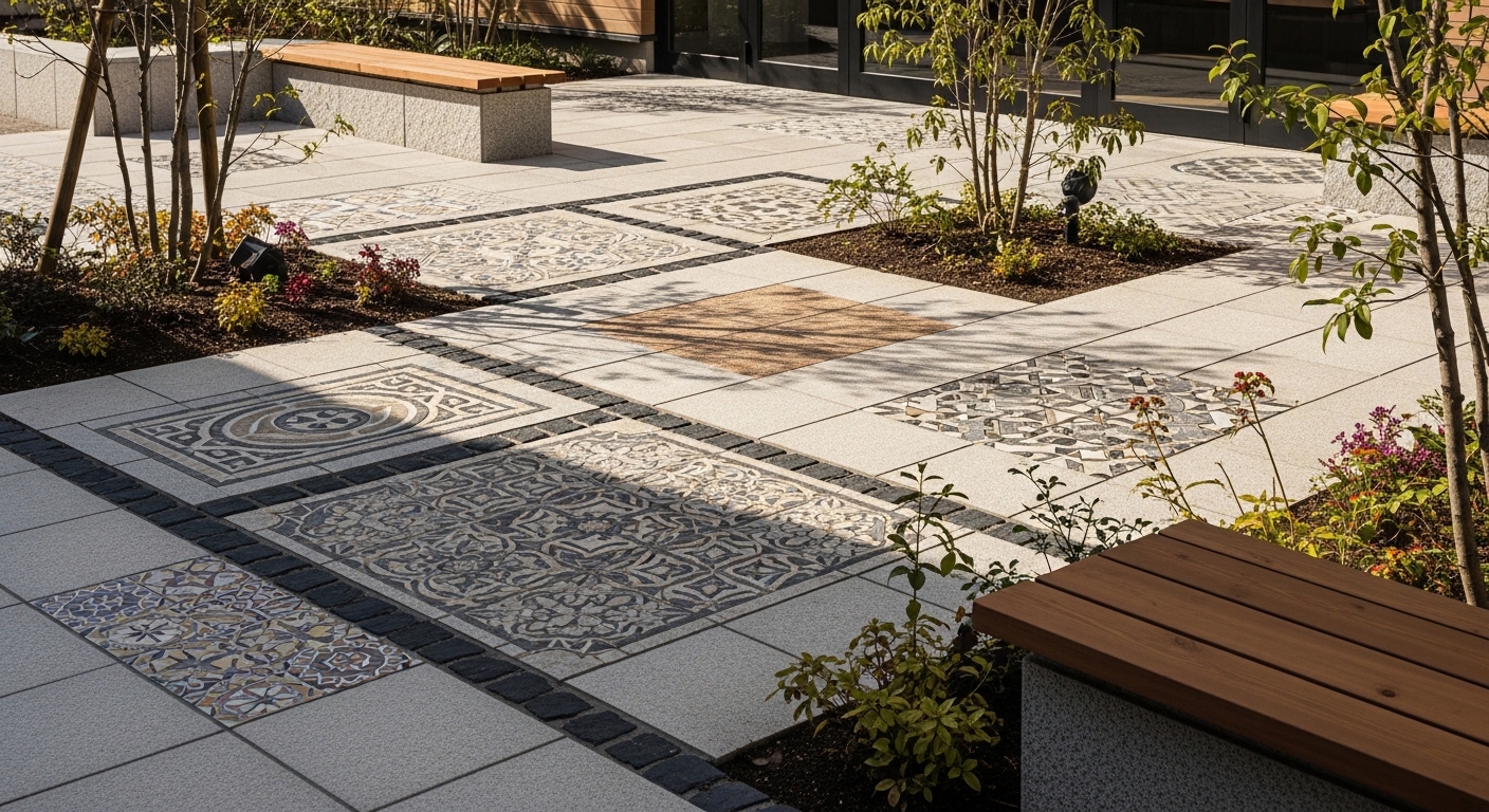 🎨 色とサイズで変わるタイル庭の印象