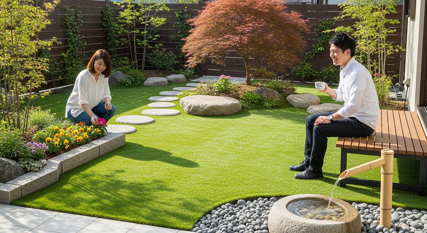 実際に、春先の芝の張り替えや、夏場の毎週の芝刈り、秋の落ち葉清掃といった季節ごとの手間が完全に不要になることで、庭を眺めるだけの時間が増え、生活の質が向上したと感じるご家庭も多いのです。