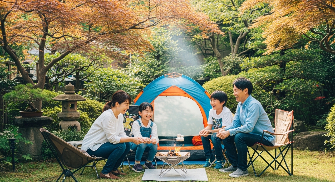 同じ庭でも、季節ごとに演出を変えることで毎回新鮮な体験になります。春は花を摘んでテーブルに飾り、夏はバケツプールを出して水遊び、秋は落ち葉を集めてランタンを灯す夜キャンプ、冬は温かい飲み物と一緒に焚き火風の演出を楽しむ、といった年間を通じた変化が、子供の記憶に残る体験を作り出します。