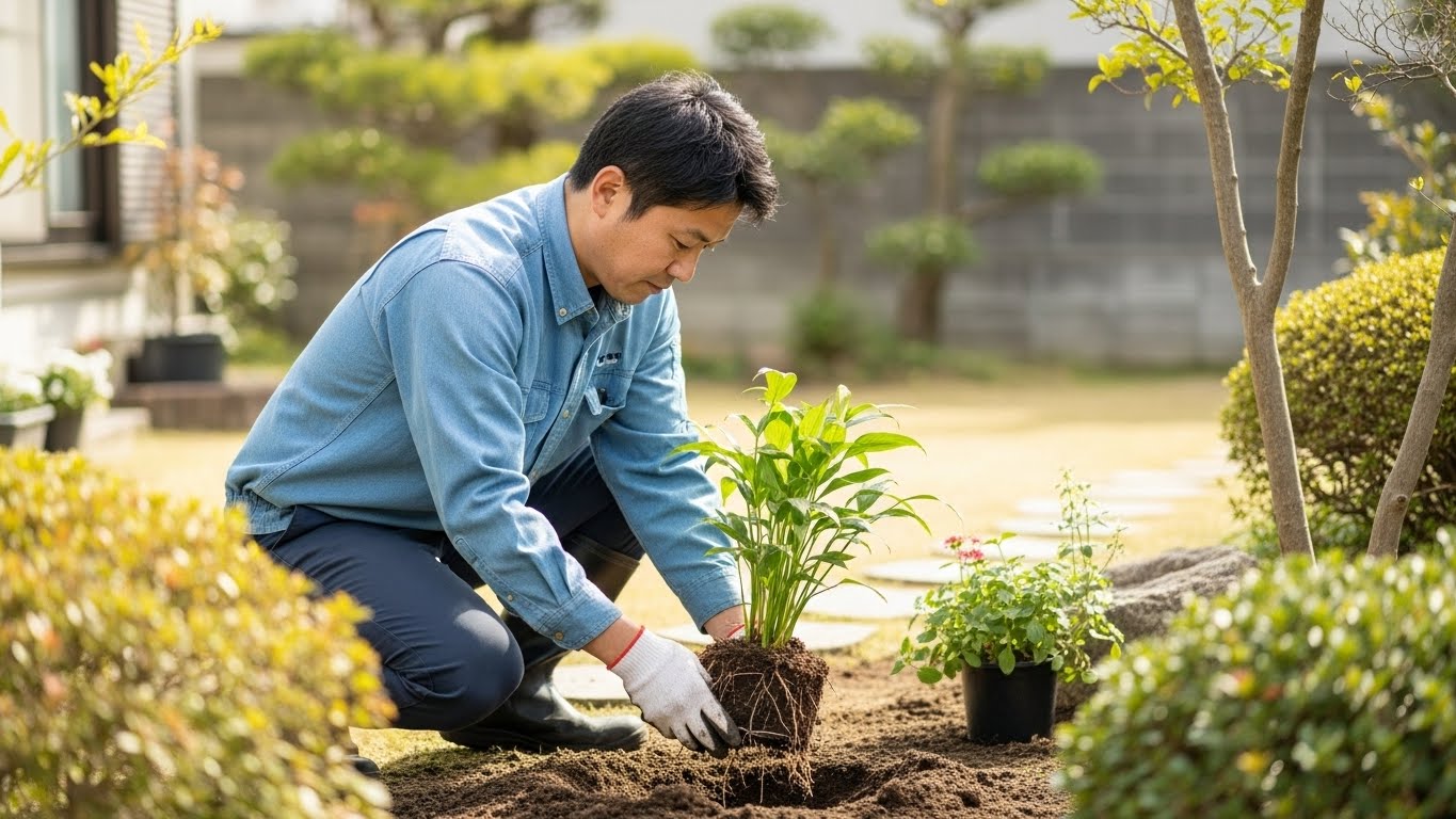 名古屋の庭づくりでは、**「真夏と真冬を避けた中間の季節」**に植え替えを行うことが、安全かつ効率的な選択です。