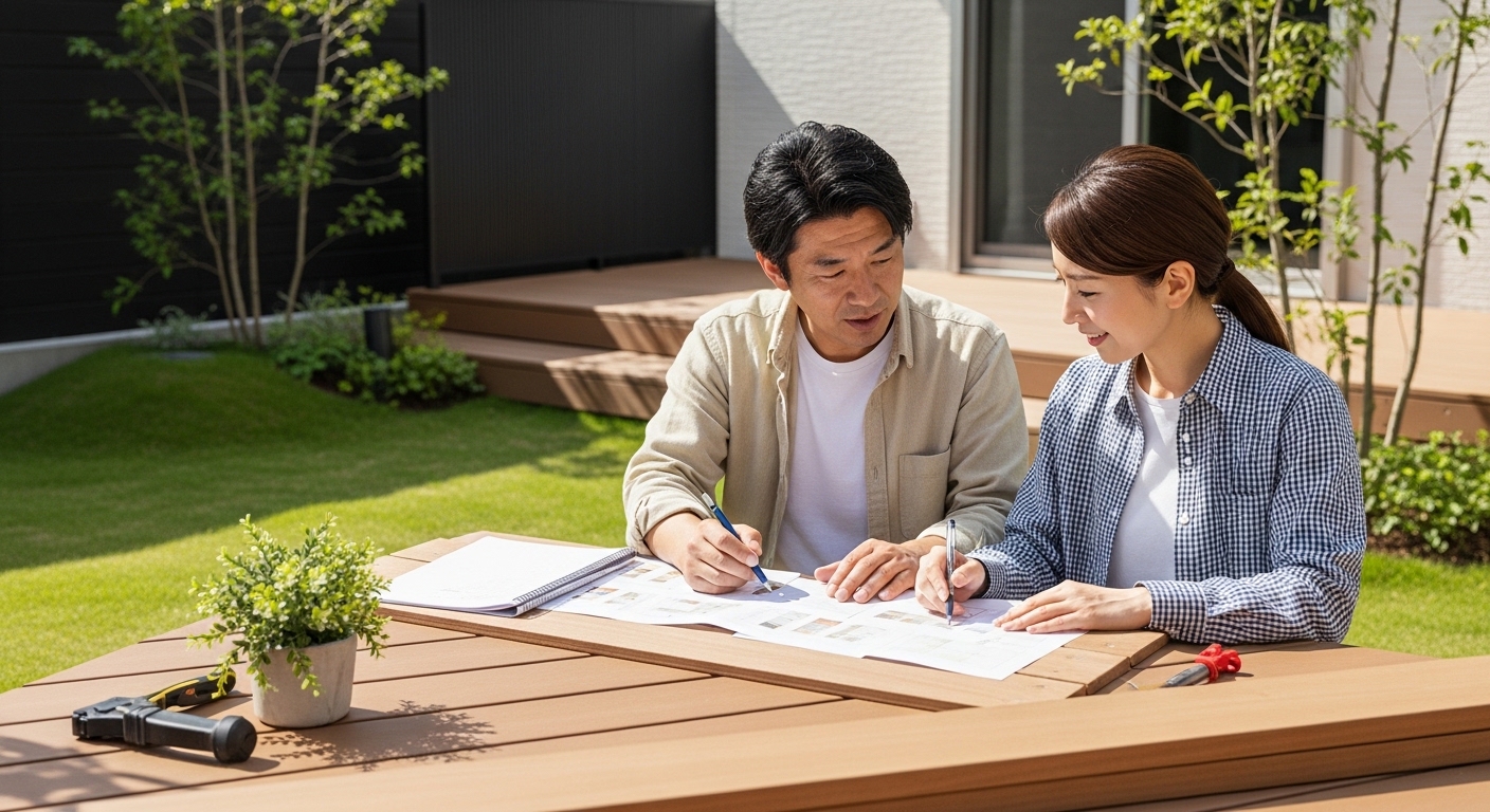 境界線は、「失敗すると安全性や建物に影響が出るかどうか」で考えるのがおすすめです。ウッドデッキの骨組み、高さのあるフェンス、雨水が集まる部分の舗装などはプロに任せ、植栽や装飾はDIYで行うと安心です。