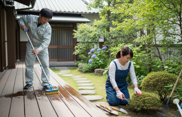 名古屋の庭づくりでは、暑さと雨への対策が必要です。夏に熱を持ちやすく、雨のあとに乾きにくい場所があるためです。人工芝と木製デッキは見栄えが良い一方、日陰や通気を考えないと快適性が落ちます。